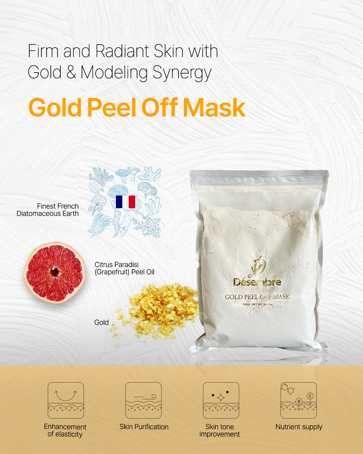 The Desembre Gold Peel Off Mask is a luxurious modelling/peel-off mask, formulated primarily for professional use (often in spas) and geared toward skin that needs firming, brightening, and detoxification.