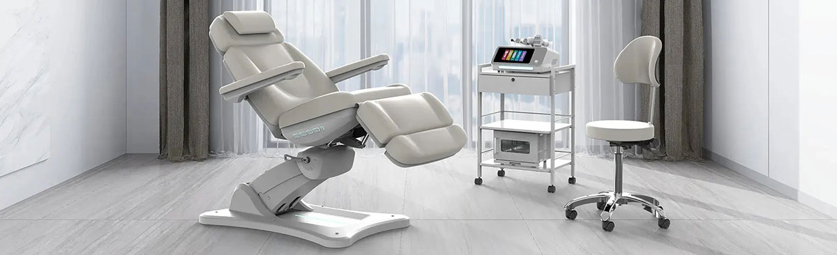 The seat measures 23 ” wide by 22 ” deep and has a maximum weight rating of 385 pounds to accommodate most users. This exam and treatment chair is extremely versatile and is excellent in all types of settings. This highly versatile chair can be used in doctor’s offices, podiatry, dermatology, plastic surgery offices and more. This electric facial chair is perfect for aesthetics, injectables, Botox, fillers and much more.