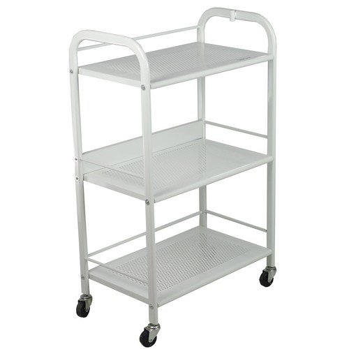 FE-T021 Beauty Trolley, popular 3 tier beauty trolley with metal shelves on wheels and bracket for cosmetic lamp