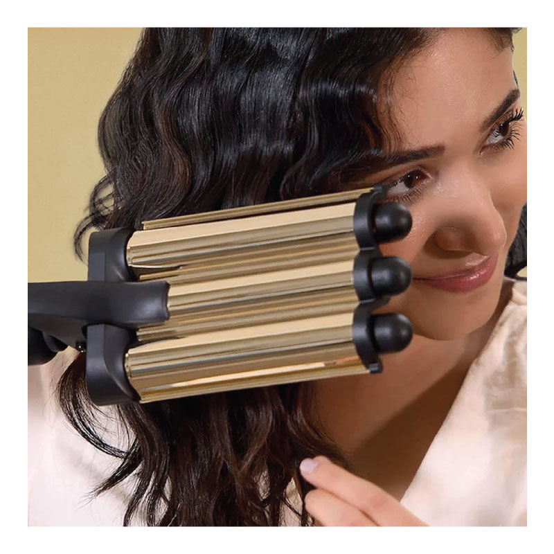 - Triple barrel waver for smooth, crease-free waves in no time