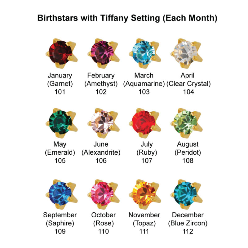 Studex Individual Month Birth stars in Tiffany Settings in Regular – Pkg of 12