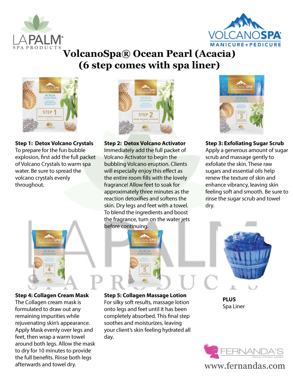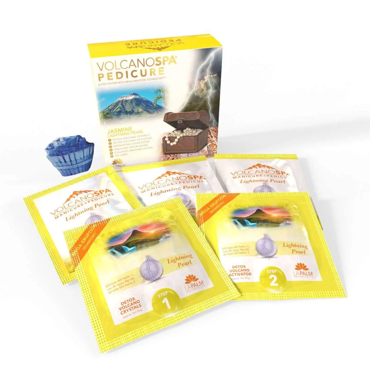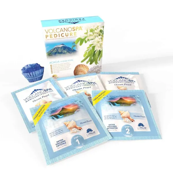 Immediately add the full packet of Volcano Activator to begin the bubbling Volcano eruption. Clients will especially enjoy this effect as the entire room fills with the lovely fragrance! Allow feet to soak for approximately three minutes as the reaction detoxifies and softens the skin. Dry legs and feet with a towel. To blend the ingredients and boost the fragrance, turn on the water jets before continuing.
