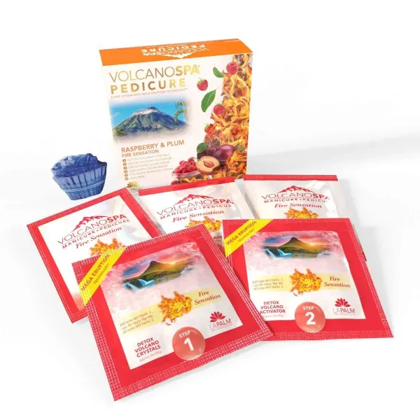 Immediately add the full packet of Volcano Activator to begin the bubbling Volcano eruption. Clients will especially enjoy this effect as the entire room fills with the lovely fragrance! Allow feet to soak for approximately three minutes as the reaction detoxifies and softens the skin. Dry legs and feet with a towel. To blend the ingredients and boost the fragrance, turn on the water jets before continuing.